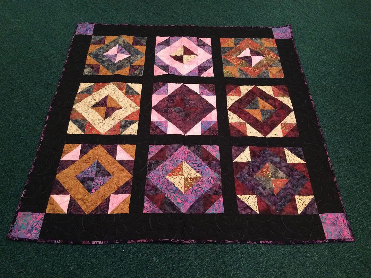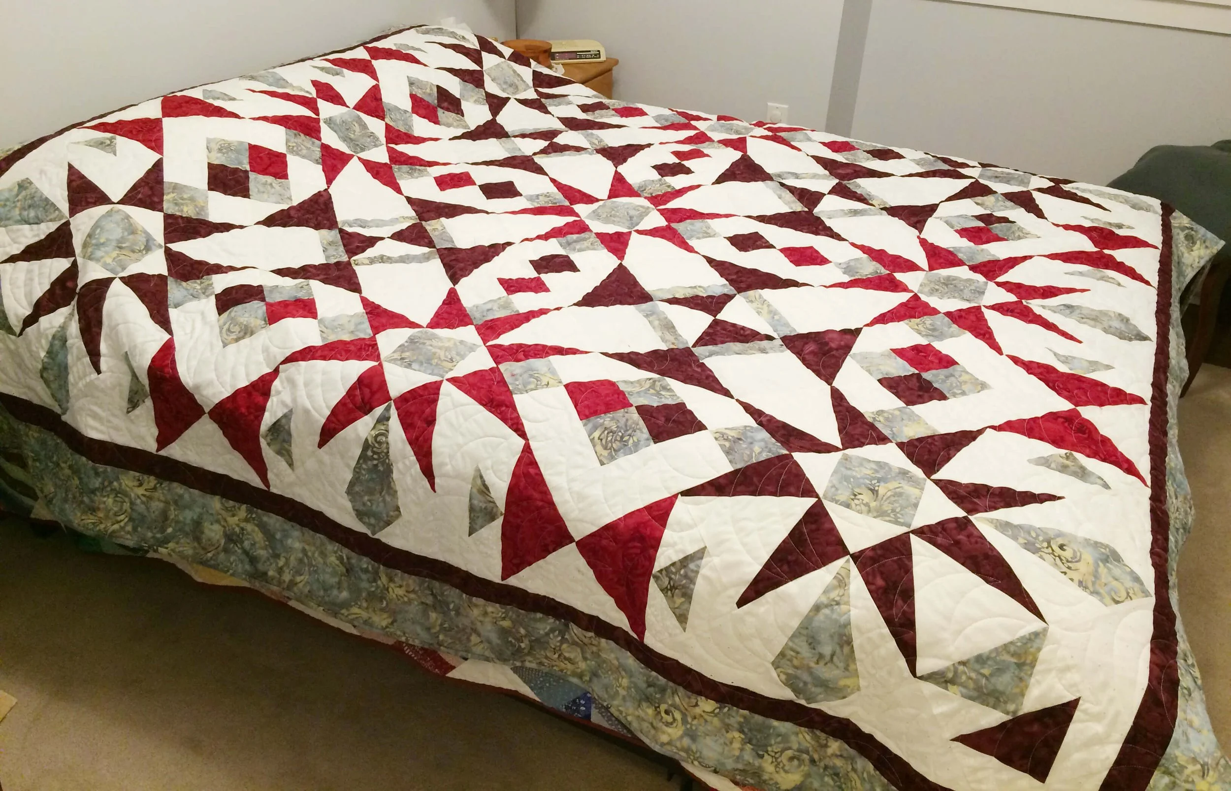 Red and Purple, machine quilted (long arm), Queen (88” x 88”)